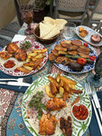 The fish was over-dried, the kutab with cheese was over-dried, the plates were not removed from the table, the tomatoes were rubber in the salad, and there was also a 20% service charge on top. I don't recommend it at all.
