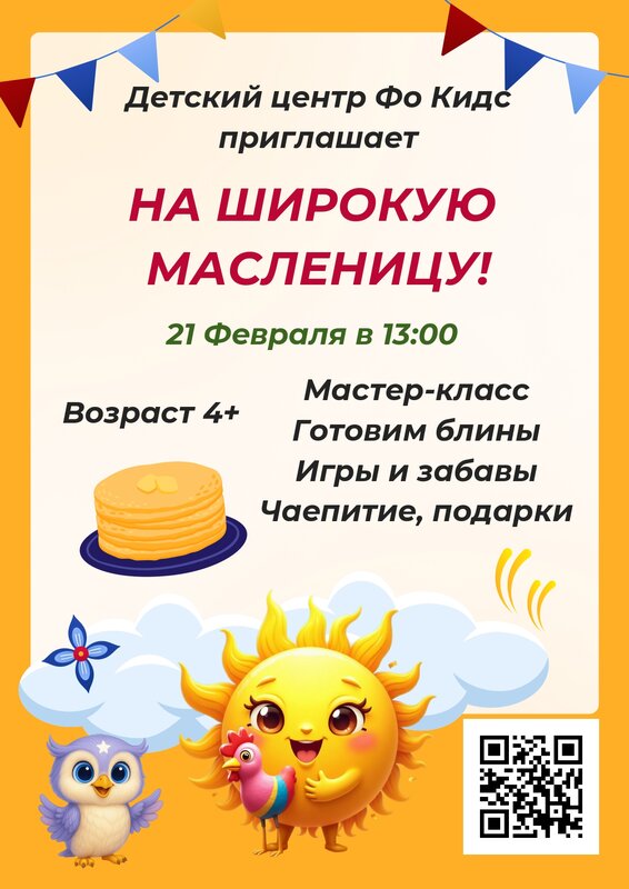 🥞 Приглашаем всех на праздник "МАСЛЕНИЦА" 21 февраля в субботу в 13:00 - 📍 Московское шоссе 49. Для детей 3+ Что вас ждет: 🎉 Масленичн...