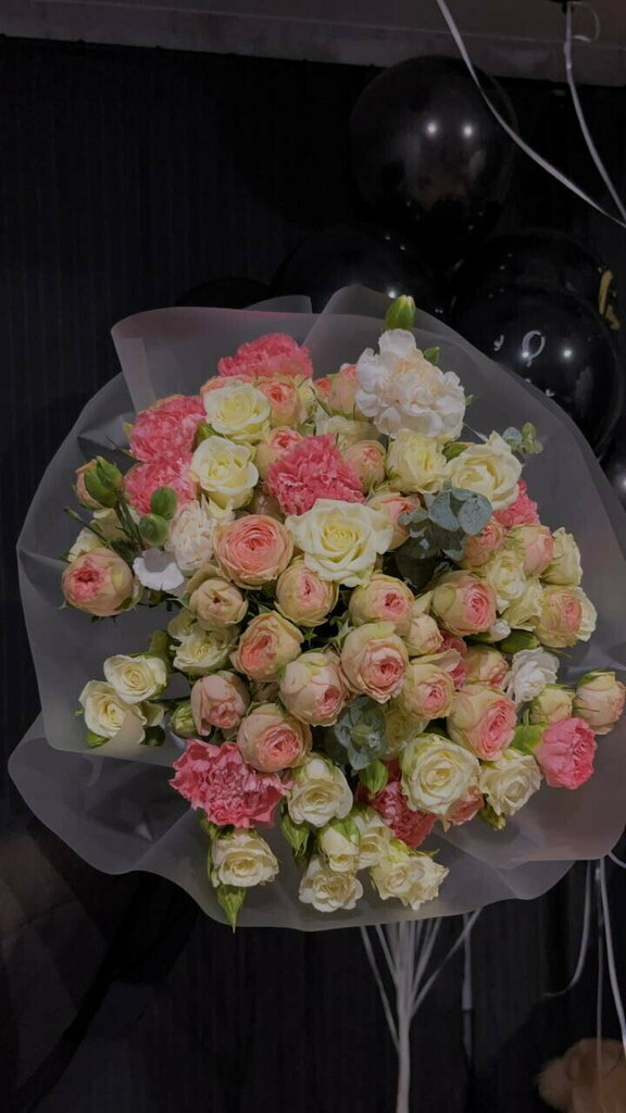 Кустовая Роза 10шт Диантус 5шт Альстромерия 3шт Эвкалипт 1шт Фисташка 2шт