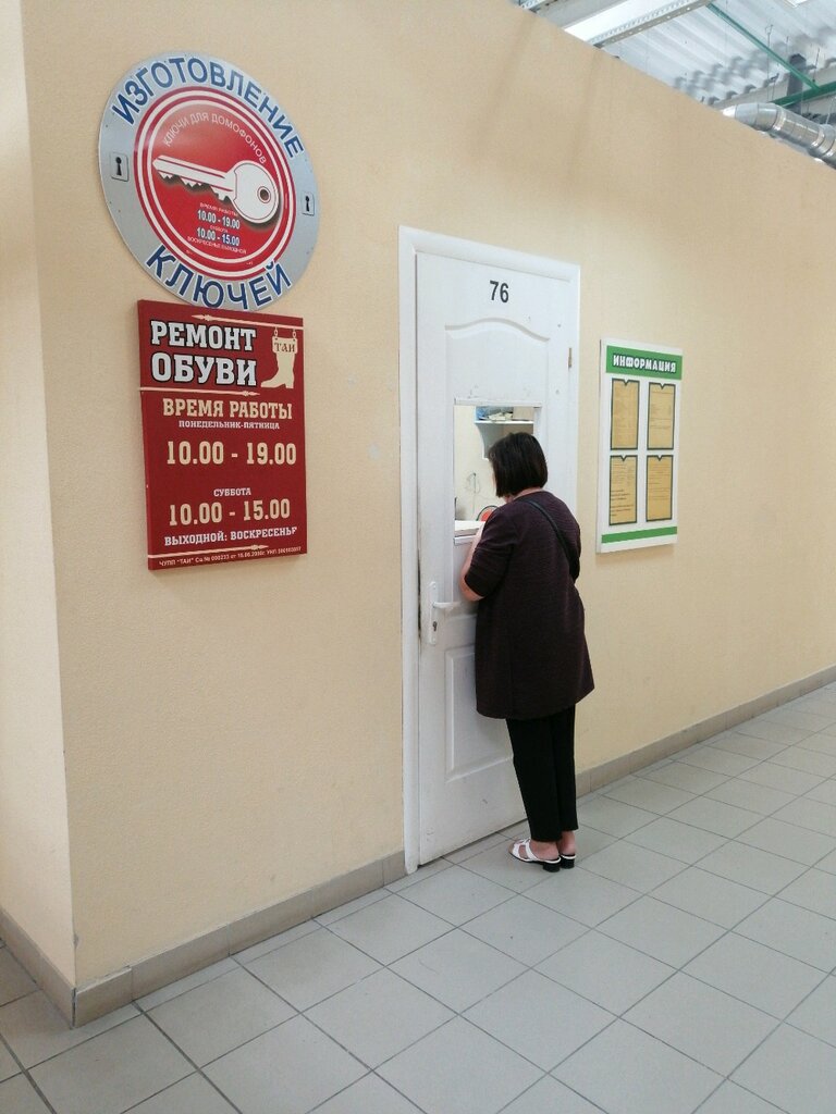 This place not only repairs shoes, but also makes keys. There is a renovation on the second floor of the shopping center. 7 keys were made in 10-12 minutes. The most common key cost me 6.50 rubles. I recommend.