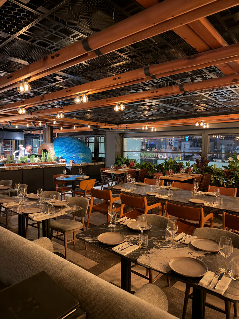 The restaurant is located in the building of the Novotel hotel, on the roof and is included in the Michelin guide: prices and service correspond. I found it in a selection of the best restaurants in Istanbul and booked it day-to-day without any problems: the only drawback was that there were no tables directly at the window, apparently, such an option still needed to be planned in advance. The view of Sultanahmet district, Topkapi Palace and the Bosphorus Strait is stunning (by the way, much better than Pierre Loti Hill with cemetery). Before dinner, you can stroll along the Galata Port, visit the Museum of Modern Art or go shopping there. Be careful that you cannot go directly from the embankment to the restaurant: you need to walk to the nearest exit near the museum. The service in the restaurant is amazing: Turks can do it, of course. The waiter literally fluttered around us: he handed out Wi-Fi to a friend so that she could safely Google what was on the menu on the Internet; he brought compliments several times (in addition to the standard bread and butter - hummus with meat and bread, cocktails). Food: we are almost full of compliments😀But I still took a fish (bonito is a mackerel fish: tender, boneless) and a glass of wine (on this trip I got to know Turkish wines: surprisingly, almost all positions on solid are good). The wine list contains an incredible number of items. Next to the restaurant there is a separate bar room with high bar tables and chairs, which is simply enclosed by glass. I noticed that there are a lot of locals among the visitors: families come for dinner, it's fun to observe a different culture. The interior of the restaurant is minimalistic, with dimmed lights, and pleasant. The kitchen is open with an incredibly beautiful green oven. I found only one negative, which can be safely extended with one minus to all local restaurants.: there is no wardrobe or even hangers. Sitting with a couch in my arms (and it was very cold that day) is such a pleasure: I really miss at least a couple of hangers for the winter. I'm not taking a star off for this, since it's a single concept in the whole city. The restaurant definitely deserves attention and a visit.