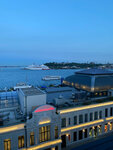 The restaurant is located in the building of the Novotel hotel, on the roof and is included in the Michelin guide: prices and service correspond. I found it in a selection of the best restaurants in Istanbul and booked it day-to-day without any problems: the only drawback was that there were no tables directly at the window, apparently, such an option still needed to be planned in advance. The view of Sultanahmet district, Topkapi Palace and the Bosphorus Strait is stunning (by the way, much better than Pierre Loti Hill with cemetery). Before dinner, you can stroll along the Galata Port, visit the Museum of Modern Art or go shopping there. Be careful that you cannot go directly from the embankment to the restaurant: you need to walk to the nearest exit near the museum. The service in the restaurant is amazing: Turks can do it, of course. The waiter literally fluttered around us: he handed out Wi-Fi to a friend so that she could safely Google what was on the menu on the Internet; he brought compliments several times (in addition to the standard bread and butter - hummus with meat and bread, cocktails). Food: we are almost full of compliments😀But I still took a fish (bonito is a mackerel fish: tender, boneless) and a glass of wine (on this trip I got to know Turkish wines: surprisingly, almost all positions on solid are good). The wine list contains an incredible number of items. Next to the restaurant there is a separate bar room with high bar tables and chairs, which is simply enclosed by glass. I noticed that there are a lot of locals among the visitors: families come for dinner, it's fun to observe a different culture. The interior of the restaurant is minimalistic, with dimmed lights, and pleasant. The kitchen is open with an incredibly beautiful green oven. I found only one negative, which can be safely extended with one minus to all local restaurants.: there is no wardrobe or even hangers. Sitting with a couch in my arms (and it was very cold that day) is such a pleasure: I really miss at least a couple of hangers for the winter. I'm not taking a star off for this, since it's a single concept in the whole city. The restaurant definitely deserves attention and a visit.