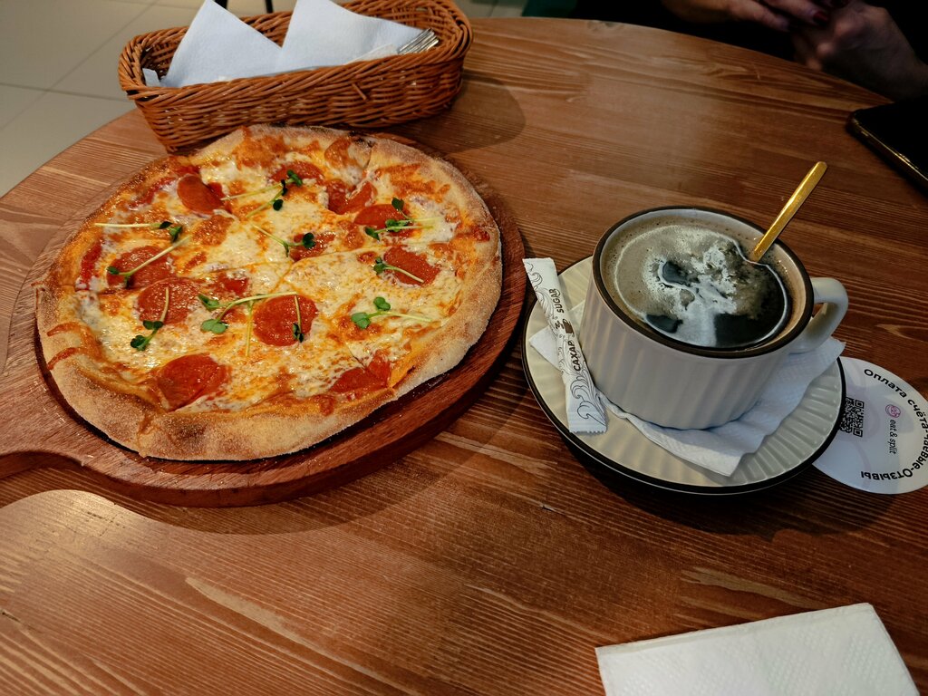 Пришел с СВФУ после очень долгой олимпиады, что пришел очень голодным. Заказал пиццу пепперони, роллы с лососью и чай по американски? Пицца получилась очень вкусным, сыр очень высокого качества, прям тянется почти на несколько метров, роллы с лососью получились тоже очень вкусными, особенно если с соевым соусом, чай по американски тоже получился аппетитным. Обслуживание прям ничего, никакой грубости, злости не было, с парнем которые работает в кафе очень даже приятно было общаться. Но цены немного кусаются, маленькая пицца пепперони стоит более 500 рублей, что немного дороже других ресторанов, кафе. Пришёл домой очень сытым, очень доволен этим кафе. Рекомендую всем например пообедать, поужинать именно в данном кафе! Следующий раз в этом же месте пообедаю.