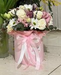 Сборная коробочка из роз, орхидей, альстромерии и кустовой хризантемы. Цвет может отличаться, уточнить у менеджера.