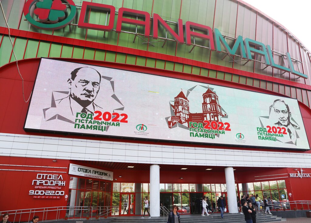 A good shopping center with Belarusian goods. There are products, furniture, and other goods. All shops are listed on the diagrams on each floor. There are a lot of free places in the underground parking. I was there on Sunday.