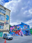 часто приезжаем сюда с детьми сходить в кафешку или в батутный центр. На стенах много рисунков разных, летом очень классно тут гулять.