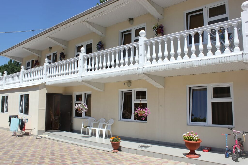 Очень понравился этот гостевой дом. Уютные номера. Туалет и душ свой в каждом номере. Есть бассейн . Летняя кухня со всеми принадлежностями. Прекрасный цветущий сад. Очень радушные хозяева. До моря 2 км: можно пройтись пешком или хозяева возят. Если предпочитаете семейный отдых, то этот гостевой дом для вас!!!