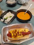 Невкусно и очень дорого для такого качества блюд. Том ям - бульон и 4 креветки. И всё. Нет заявленных грибов, помидоров и мидий. Хот дог с говяжьей сосиской - нет заявленных огурцов. Булка, сосиска и соусы с луком. Лук фри был очень жёсткий, прожевать невозможно, пришлось снимать его с блюда. Мужу чуть больше повезло с качеством блюд, заявленные ингредиенты были на месте. Но второй раз не пойдем сюда.