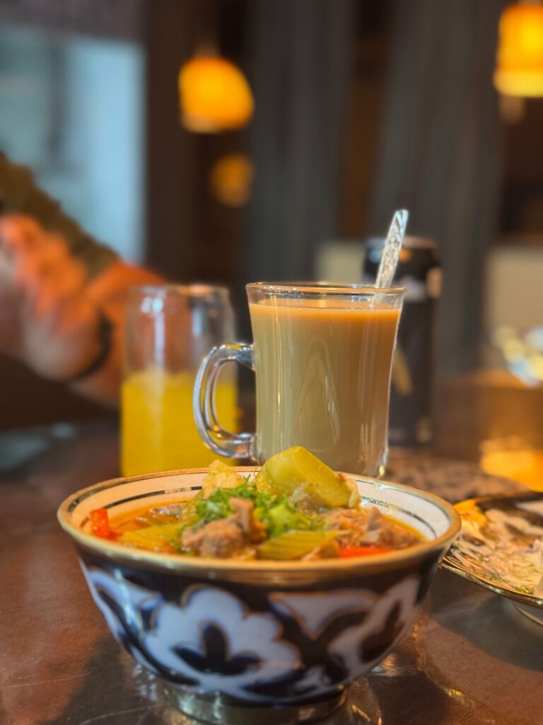 Зашли в чайхану и остались довольны, Интерьер уютный, обслуживание внимательное, вечером там особенно приятно, новогодняя гирлянда👍. Плов и шашлык-отдельное удовольствие , чай подают красиво. Хорошее соотношение цены и качества, рекомендую для семейного ужина или встречи с друзьями