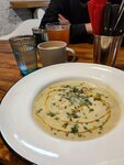 Excellent coffee, very tasty and varied food. We tried spicy ramen, chowder, hummus with chicken and pita. And with all these delights, a child can order "just mashed potatoes" with "just boiled breast", it's just priceless)
