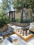 Прекрасное место для отдыха,милый небольшой отель просто утопает в зелени и благоухающих цветах,мангальная зона (бесплатно) и детская площадка а также уголок для творчества,детей занимает аниматор,а взрослые могут насладиться уединением возле фонтана. В этом году людей было мало и это отдельный плюс) Номер соответствует фото,у нас были уютные апартаменты с видом на море,2 отдельные спальни,кухня и зал с телевизором,мы готовили сами или ходили в местные ресторанчики,коих огромное множество вокруг,были приятно удивлены устрицам и вкуснейшим мидиям по приятным ценам. Единственный минус это удаленность от пляжа,но мы были на машине и кроме того,отель предоставляет бесплатный трансфер. Хочется также отметить приятный и всегда готовый помочь персонал и хозяйку отеля,сразу чувствуется что все делается с душой.