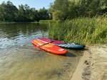 На мой взгляд лучший магазин сапбордов по ассортименту, ценовой политике и качеству обслуживания. Купил в Сапборде Shark Cruiser+ Perfomance All Round 11'6x34x6 (2025) На данном этапе для меня идеальная доска. Очень устойчивая и при этом довольно быстрая. С двухлопасным веслом на дистанции 25 км по Луге средняя скорость за вычетом скорости течения получилась 5,5 км при моем минимальном опыте(второй сплав) и отсутствующей техники гребли(она скажем так, в процессе становления). Думаю, с опытом держать на ней 6-7 км в час в среднем на дистанции вполне реально. Плюс вес доски при такой ширине всего 9,2 кг, что важно, когда таскаешь ее от электричек и обратно. Многие ругали спорный дизайн, но именно эта вживую смотрится великолепно и радует глаз. Так как катаюсь сидя, докупил здесь же в Сапклабе сидушку(правда не фирменную шарковскую, они для меня слишком низкие) , а Itaostar, которое легко крепится к этому Шарку без установки дополнительных рымов.
