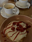 Наконец-то выбрались хотя бы в один филиал Кэрри😄 Разнообразное меню, есть как лёгкие блюда, так и более калорийные (паста, бургеры и т.д.). Я взяла себе большой завтрак с тостом из индейки, официантка спросила, как мне приготовить яйца: глазунья, скрэмбл или пашот. Это было приятно) Единственное, овощи были не солёные, но может так и надо, я не знаю. Хотела попробовать малиновый raw- кейк, но он закончился( Взяла вместо него классический, он не подвёл, вкусненький. Молодой человек брал карбонару и бургер с цыплёнком, бургер для него был слишком солёный, но он всё равно съел хаха Лимонады на сиропах, но не химозные. В меню очень много десертов и авторских кофе, думаю, мы ещё вернёмся, слишком большой соблазн всё попробовать 😄 Официантка Яна милашка, ей отдельное спасибочки😊
