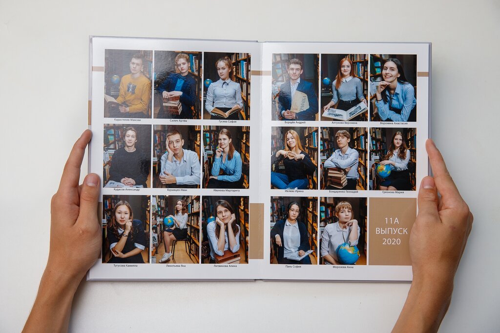 Выпускной фотоальбом на 10 разворотов. Включает в свою стоимость 4 фотосъемки, портретные, уличные, физкультура и фото с друзьями.