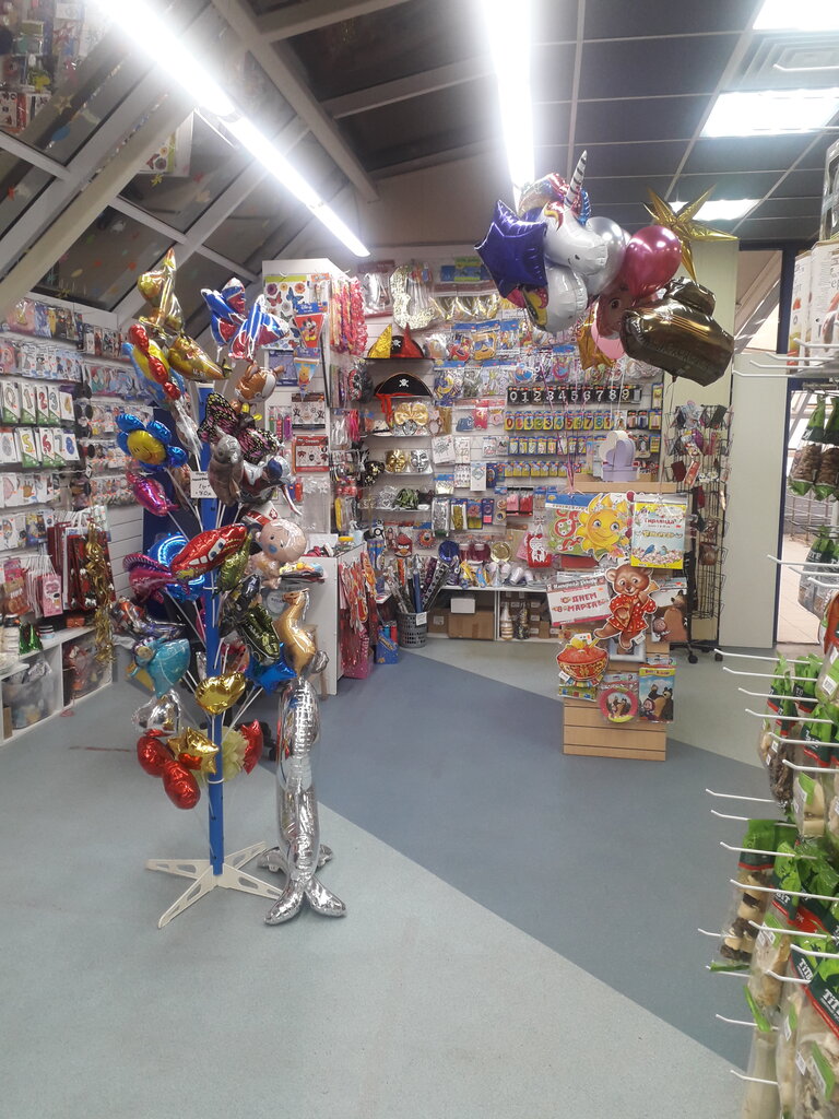 Хороший магазин, есть все необходимое для праздника, приветливый, вежливый персонал, приемлимые цены, можно надуть свои шарики по адекватной цене, к посещению рекомендую