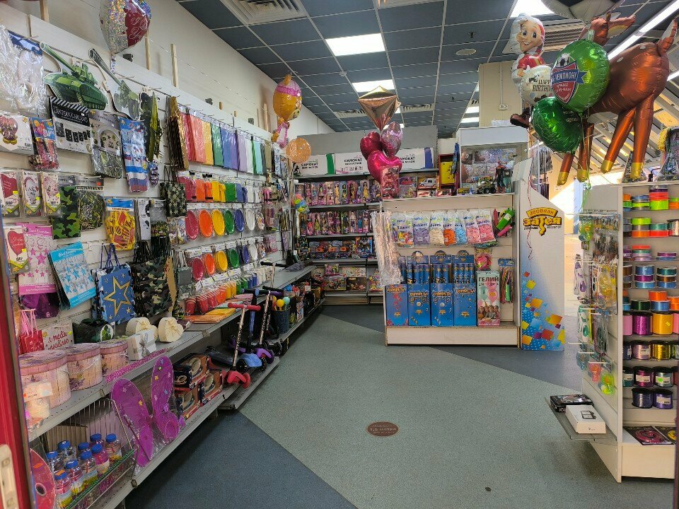 Хороший магазин, есть все необходимое для праздника, приветливый, вежливый персонал, приемлимые цены, можно надуть свои шарики по адекватной цене, к посещению рекомендую