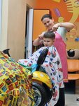 Прекрасное место для стрижки ребенка! Каждый раз сюда ходим. Деток быстро и красиво стригут. Наши длинные волосы, аккуратно лежат после стрижки. Включают мультики по вкусу, сажают в красивую машинку на выбор и еще коробка с мелкими игрушками, чтобы ребенок не скучал. Даже конфетками угощают😍