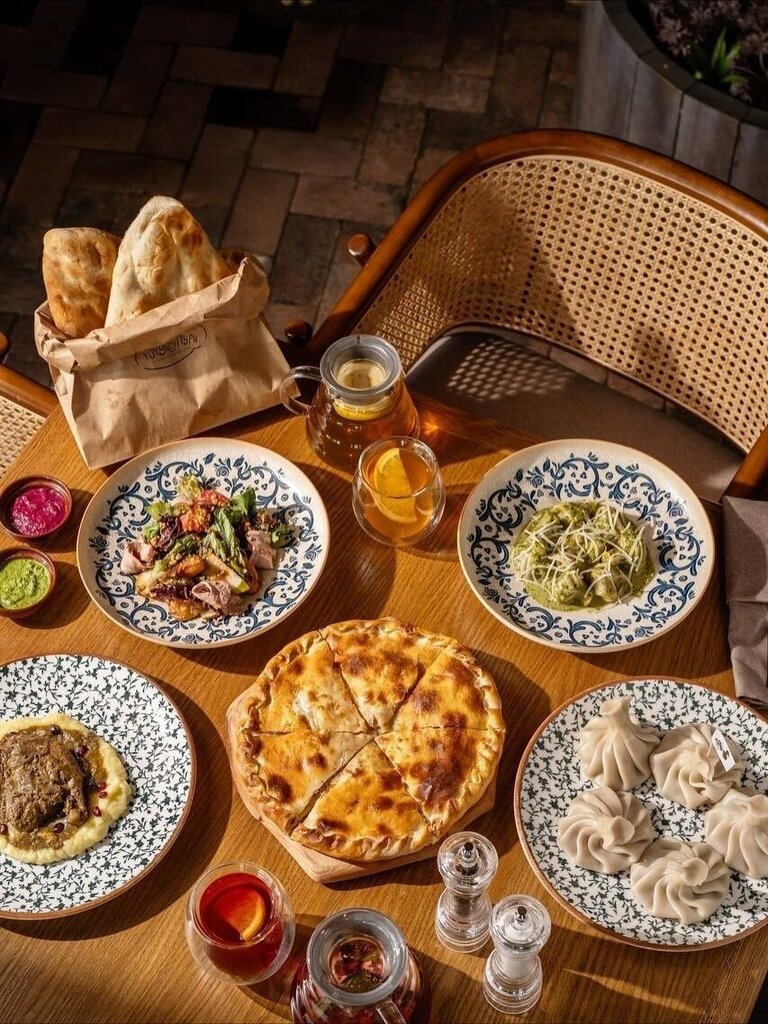 P.S. Была 21.09.25, очень вкусные хинкали с овощным соусом, с говяжьим качественным фаршем, однозначно дальше буду брать штучные хинкали и пробовать другие соусы с ними. Горячая лепешка (бесплатный комплимент) как всегда восхитительна, тонкая хрустящая корочка и мягкая теплая внутренность. ШТРУДЕЛИДЗЕ стандартно великолепен! Обслуживание также внимательное, вежливое, быстрое. Так держать! Была 09.08.25. Очень понравилось. Вкусная еда, отличное обслуживание, приятная атмосфера, адекватный ценник. Несмотря на то, что ресторан находится в торговом центре, не ощущается этой суеты и привязки на местности (вообще к ресторанам в ТЦ я слышала не очень позитивное отношение, но мой опыт очень даже положительный). Вначале мне принесли комплимент : лепешку и два соуса к ней, было вкусно. Я заказала : хрустящие баклажаны с чесноком, они были великолепны, я нигде ещё не ела так щедро нарезанные баклажаны, которые были реально хрустящими с тончайшей корочкой снаружи и мягкими мясистыми внутри … теплый салат с ростбифом - опять отлично, вкуснейший тающий во рту ростбиф и свежие овощи… ну а в заключение ШТРУДЕЛИДЗЕ - это полный восторг! Потрясающее тонкое пропеченное тесто (не мокрое, замечу!) с запеченными яблоками и шариком обалденного домашнего пломбира. Отрыв башки, как вкусно. Не приторно, не переслащено, вот прямо все как надо и оооооооочень вкусно. Ах да, все выпекаемые десерты (фисташковый хачапури, вафля, штруделидзе - выпекаются на месте, и подаются горячими!), это просто восторг! Отдельное спасибо Софье, очень доброжелательно и внимательно обращается со всеми гостями, хорошо ориентируется в меню. На будущее я её расспросила про состав хинкалей, обязательно приду опробовать😃 Мой заказ вышел на 1600р, считаю, что очень даже лояльные цены. Однозначно рекомендую.
