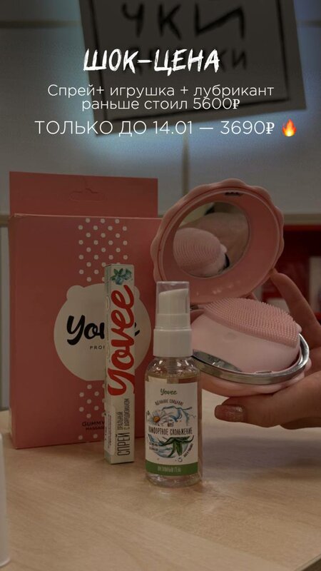 Лубрикант с алоэ и ромашкой -комфортное скольжение Массажное масло с феромонами - расслабление+соблазнение Напальчник с вибрацией - мурашки до дрожи внутри и снаружи Было 2680р,стало 1590р