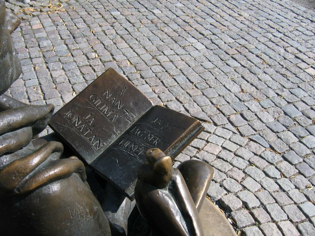 In the book that Astrid is holding, there is a quote from the finale of the story "The Lionheart Brothers": "Nangilima! Yes, Jonathan, yes, I see the light!" In Sweden, this phrase is often quoted in obituaries and at funerals.