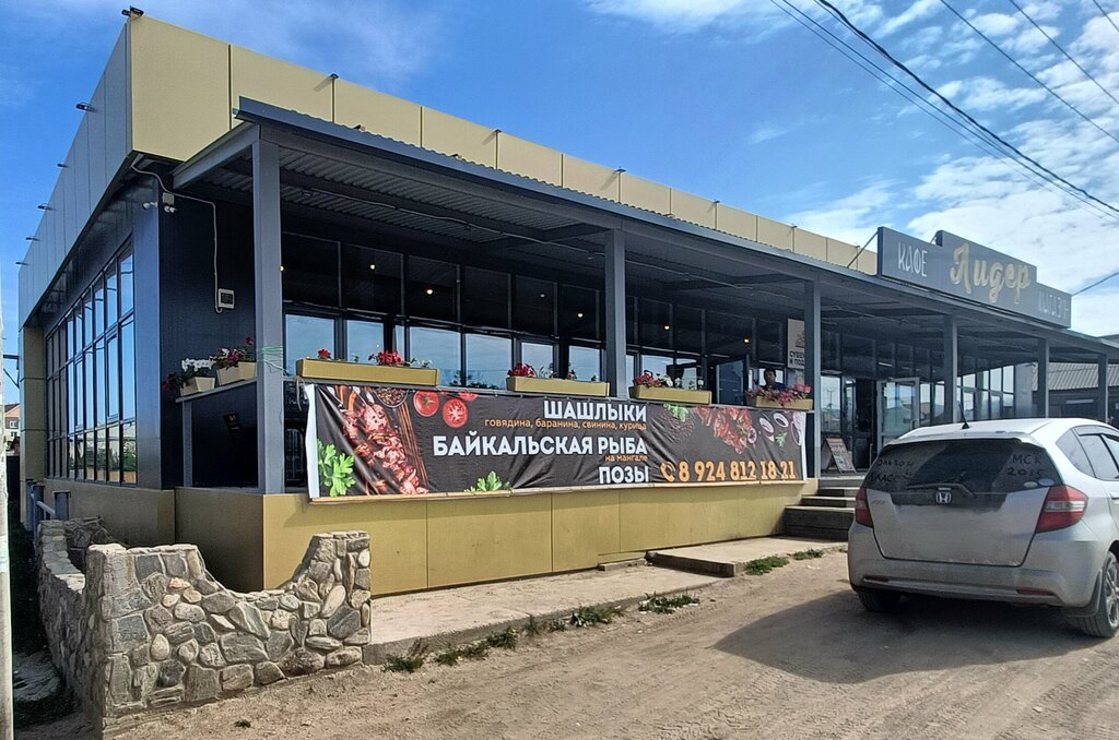 Кафе классное, вкусная еда, хороший шашлык. Ели и в других кафе Хужира, постоянно возвращались в Лидер. Очень оценили что пустили с маленькой собачкой, даже собачке воды предложили!❤️ Перед отъездом искали где поесть рано утром, всё закрыто, а в этом кафе накормили завтраком (хотя ещё не открылись) Огромная благодарность всем работникам и хозяевам!🫰 В магазине кстати всё есть, очень удобно. Хлеб горячий)))