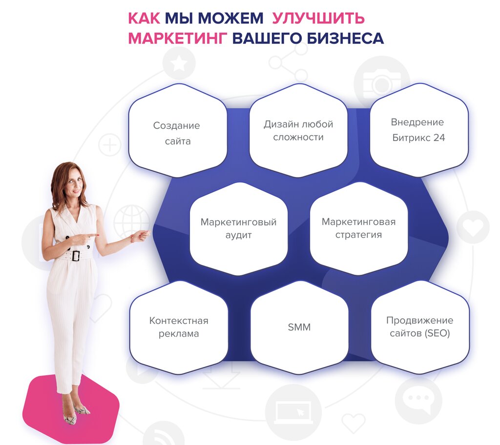 Internet marketing services:Google promotion, context advertising, promotion in social networks, SEO promotion, Yandex promotion, promotion on Instagram, internet marketing analytics, targeted advertising