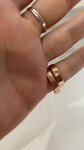 Так выглядят наши обручальные кольца через месяц после свадьбы. Причём муж носит не снимая, я надеваю кольцо редко (можно сказать только на выгул))) Но моё кольцо выглядит более потрепаным, чем его... Брали женское в Авроре, мужское в Эль Рио, тк размер был здесь. 46 тыс за оба кольца. Считаю обычная цены для обычных обручальных колец. Очень разочарована в качестве... К сожалению, прямо в день свадьбы выкинули бирки, не подумали что могут Пригодиться.. Я в курсе, что золото мягкий метал, и может царапаться. Но не так!!!! И не через месяц после НЕ регулярной носки. Это прям потертости на поверхности ( оба с мужем работаем НЕ руками) Консультанты все отличные, подсказали, при продаже ещё лупой показали пробу внутри колец... Но какое бы клеймо не поставили., качество на лицо.