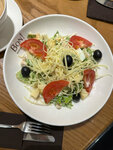 Тунец, варёное яйцо, маслины. Подаётся в артизанском льняном хлебе, обжаренном на сливочном масле, под соусом Cesar и микс-салатом под зелёным маслом из укропа