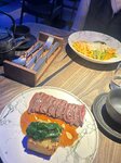 Ресторан очень понравился. Спокойная атмосфера при почти полной посадке. Отдельно хочется отметить большие окна — хотя вид из окна не самый красивый, все же в светлое время суток приятно находиться в таком помещении. Из блюд выбрали филе оленя, пельмени с нельмой, пасту с крабом, в качестве десерта — черемуховый брауни. Все перечисленное понравилось, хотя порции действительно небольшие. Не совсем понятно правда, что было черемухового в брауни? И с ягодным мороженым все же неудачное сочетание. Однако само пирожное очень вкусное. Пили чай, алкоголя не было, чек составил около 5,5 тыс. Обслуживание очень быстрое, ненавязчивое, посуда на столе ни разу не задержалась. Готовят блюда тоже быстро. Единственное, что можно улучшить, на мой взгляд — разнообразить меню на несколько позиций, особенно десерты. Именно десертные позиции показались очень банальными. В остальном отличный ресторан, хотелось бы вернуться.