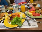 There are both pros and cons of this hotel. Regarding the cons. The uncoordinated work of the administrative staff (for example, the reception found out that you can use an unused meal at any other time. We come to the Crescendo restaurant- and the receptionist girl takes a very long time to find out if we really have the right to eat ... unpleasant). Water. 2-3 glass bottles are placed in the room, according to the mood. It is inconvenient to take to the beach. As a result, you have to buy water at the bar. I think a hotel of this level should have free water throughout the hotel. In the restaurant, tea/coffee/water is included only in the breakfast. At lunch or dinner, you can pour water for yourself for free, but tea is not even included)) desserts are included though. Insanely expensive bars and restaurants on site. 2500 for a cocktail that barely feels like gin, 2000 for corona beer. 3000 rubles - burger with potatoes. The system for calling waiters on the beach works every other time. A small fenced area in the bay on the shore where you can swim. And not because it is dangerous, but because of all kinds of boats and water transport, which are immediately offered for rent. Obsessive sellers on the beach, I don't understand why they won't be kicked out, they annoy everyone. The main pool near the beach is very shallow, there are mostly children there. There are 2 lagoon pools, on the right and left side, where there are villas with access to these pools. We swam there a couple of times in total, they are more convenient for the residents of the villas. On Saturday there was a special brunch in a regular restaurant, they said - if you want to eat, you have to pay 120 dirhams) Although we had breakfast and lunch/dinner included. Or go to a restaurant on the beach and order from the menu (very limited, by the way). And there are such pitfalls in everything. Of the advantages: The beautiful green area of the hotel, beautiful interior and exterior in Thai style. The view from the apartments on the 5th floor was amazing - the Persian Gulf and the lagoon pool. The food is varied and delicious at the Crescendo restaurant. I especially liked making salmon bagels in the morning. A chic dessert showcase and a chocolate fountain. Fresh fruits. The beach is not bad, it's nice to spend time there, the view is gorgeous. There is a free shuttle to the Mall of Emirates. Verdict: it's been better, but not to say that it's bad)