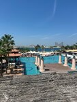 Cool hotel. The territory is large. You can walk both around the hotel and along the general embankment. The food is excellent, several zones with different cuisines. The pools are super. You can swim past all the houses on the water. There are water activities on the beach, the beach is sandy. It's super easy with kids. The only disadvantage is that it takes 30-40 minutes to get to the city, this is only before the beginning of the palm tree. If to the center, then almost an hour more.