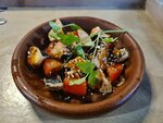 Вкусно, не слишком дорого. Понравился салат "Лада седан": хрустящие баклажаны обжаренные на сухой сковородке, свежие помидорчики, немного кинзы и сладкий соус Чили остренький в меру. Пробовала хачапури "жульен с грибами", интересная интерпретация лодочки с сыром, вкусно. Сковородка со свининой и картофелем немного не впечатлила, многовато масла, мясо как недожаренное чуть было