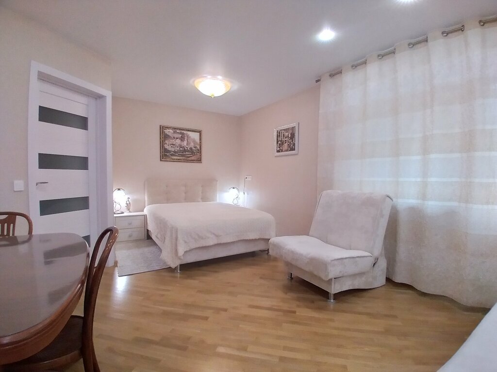 The apartment is VERY GOOD in principle. Beautiful renovation, furniture. There is a bathroom with a toilet and a sink, a kitchen, a bedroom with a large bed and a sofa where you can also sleep, an armchair, a plasma TV and a balcony. There was Internet, thank you) Everything is very cool, but towards evening problems began to appear. 1. The refrigerator door was slightly broken, but they explained everything to us (the reason) and said that it was very difficult to find a refrigerator in size in Belarus. Well, of course we did not betray the importance of this and gave up on it. The main thing is that it works. 2. There were problems with the bathroom in the evening. I decided to wash up and wanted to switch the water to a bending mixer (well, or whatever it's called, I don't know, well, in short, you get it). The shower consisted of 3 taps: a bending one, a shower and just a faucet, like in a sink. So, only a regular faucet was working. Neither the shower nor the bending one worked. I couldn't switch it. I had to bend over to wash myself somehow. Well, in other things, we were only for one day, so that's fine. I don't know if this can be considered a minus, but I'll still say it as a fact. The toilet was flushed, so to speak, because of all available forces. It didn't wash off the first time. Well, maybe such a manufacturer. In principle, the apartment is not bad, even excellent. It'll do for a couple of nights. I was there a long time ago, but decided to write a review only today. I think, of course, the hostess already knows everything and has solved all these problems. I'll bet 5 ⭐⭐⭐⭐⭐. I recommend it)