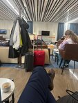 Посещала 17.02.26., пожалуй, это худший бизнес зал в моём списке. Вход начинается с лестницы - идеальное решение для тех, кто с чемоданом:) Далее ты попадаешь на стойку ресепшн, персонал из двух совершенно неприветливых девушек, у которых на лице написано нежелание общаться с посетителями, утруждающих себя отрываться от своих телефонов. Сам зал настолько непродуманный и неуютный, работающие телевизоры на стенах без возможности убрать звук. Объявления в зале такие громкие, как-будто все кругом глухие. Еда более-менее неплохая, но нет фруктов. Из плюсов: много мониторов с рейсами, и есть вода в маленьких бутылках. Фото сделано после того как 90% людей пошли на посадку.
