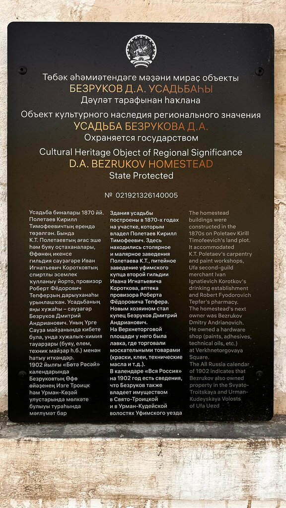 Landmark, attraction Усадьба Безруковых, Ufa, photo