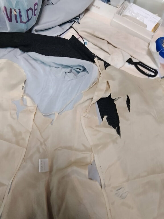 Сегодня забрала 2 пары, длину отмеряла сама. Одна пара подшита видимо по моей мерке, вторые короче чем надо было см на 5, их сможет носить ребенок ростом не выше 155см. Такое впечатление что отрезали длину 2 раза, они были очень длинные изначально. Ну и на фото видно как «мастер» отрезает длину, кусочки ткани приложила .