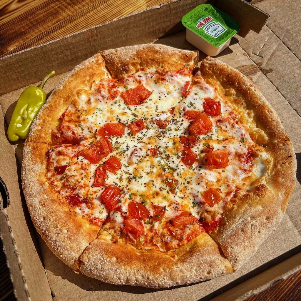 Заказал пиццу по пути, подъехал, точно в срок была готова. Очень вкусная пицца! Единственное что не удобно это нужно переключаться в приложении между городами. Иначе не увидеть на карте пиццерию.