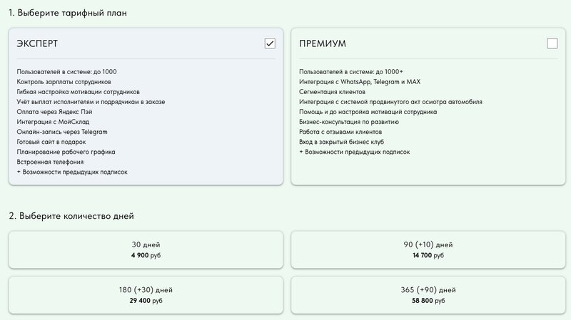 Тариф «Премиум» — это расширенная CRM для автосервиса, которая включает все возможности тарифа «Эксперт», а также инструменты для развития бизнеса, управления клиентской базой и повышения прибыли СТО.