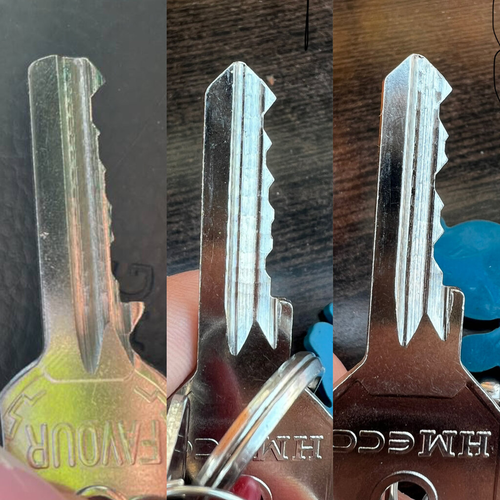 2 раза нам переделывали ключи! Всё равно не подходят. Злая, ужас!!!!!! Столько времени и нервов убили! Первый ключ - это работа чудо мастера , два других оригинал.