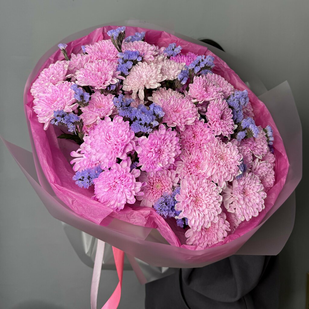 Состав: Розовые альстромерии, 13 шт. Крафт-бумага Корейская пленка Атласные ленты Размеры: Высота, 45 см Ширина, 30 см