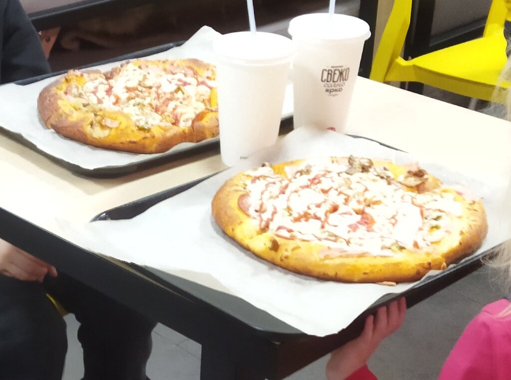 Пицца идеальна но сотрудники офигели.Заказала пиццу с собой а выдали на подносе я села за стол и откусила пиццу пока жду подругу к нам подошли и сказали то что больше выдавать заказы нам не будут раз мы едим тут , а мы ждали заказ подруги и собирались домой . Подруге выдали на подносе хотя она тоже заказывала с собой в ответ на : " почему на подносе я же просила с собой ?" Эй ответили очень тихо то что мы едим ТУТ . Мы платим за это деньги нам должны были выдать то что мы заказали, мы имеем право есть где захотим если что-то не нравится то пусть коробки будут платные!!