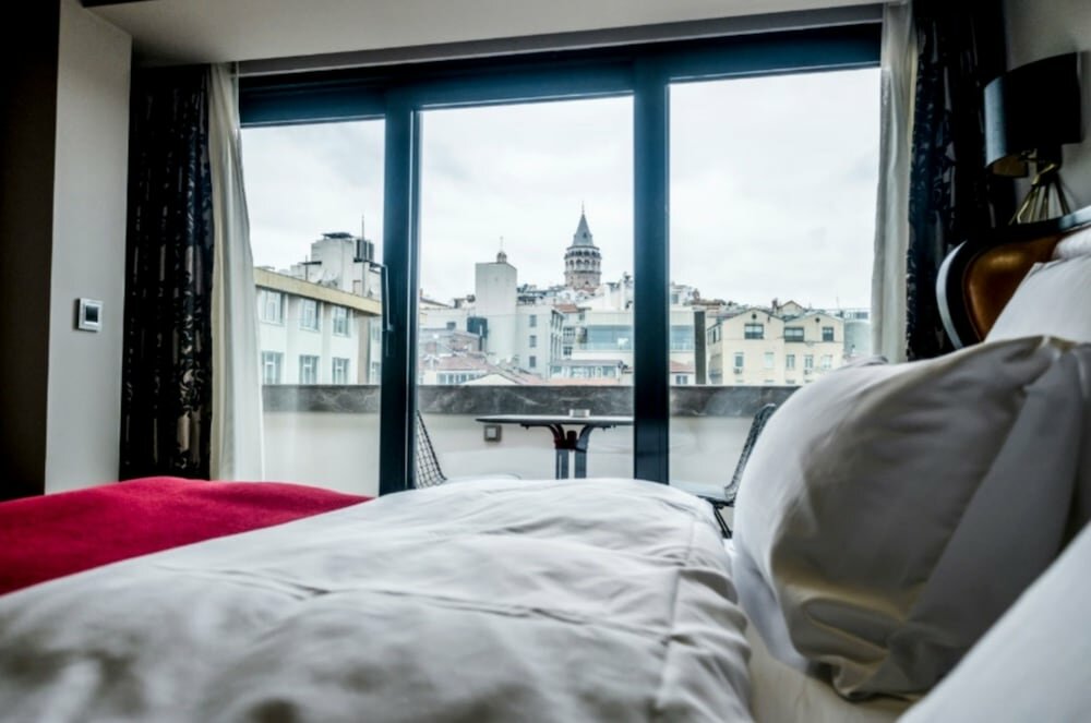 We spent 7 nights at the hotel, extremely positive impressions. Yes, the room itself is a little tired, but nevertheless very beautiful, we also had high ceilings, a view of the avenue, and a partial view of the Bosphorus. The rooms are carefully cleaned and towels are changed every day, and the view from the roof, where breakfast is held, is simply magnificent - you can see the Sultanahmet district, several mosques, Galata Bridge (which is located right at the exit of the hotel). Actually, the main advantage of the hotel is its location. Galata Tower is 5 minutes away, Galata Bridge is right next to the hotel, there is also a bus and tram stop. To Sultanahmet district - cross the bridge.