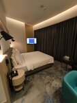 We are satisfied with the hotel. It is quite new in design. European cuisine is bigger (more familiar), but there are elements of local cuisine. I liked the restaurant. Polite staff. They speak English. Free Wi-Fi on site. Nice view from the window. We had the 4th floor, but we saw everything around, because there is no countdown from the first floor, but there are floors L,R, B. The 4th floor is higher than other buildings, the building has a rounded shape. It offers a beautiful panorama of the mosque and the fortress. We were with two children, we were given two rooms. The door was opened between the rooms, and we got a beautiful two-room suite with two doors (which means 4 keys) and a bathroom. Which was very convenient. The room has an ironing board, iron, kettle, tea, coffee, water, refrigerator, care products, slippers and other necessary items. I recommend. The hotel is mainly inhabited by Europeans from different countries.