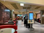Зал удобный. Столиков много. Оформление приятное. Сотрудники вежливые. Приготовили быстро и вкусно. Жаль, что из зала вид на сказочный фуд-корт частично скрывает перегородка. А еще порция медовика уж очень маленький. Жаль, потому что очень вкусный этот медовик: нежный и без лишних привкусов. Из минусов; На экране заказ мой не отобразился, пришлось сходить выяснить. Правда, пока выясняли, заказ мой уже принесли к столику)