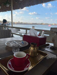 Mega cool restaurant. The view is gorgeous. The dishes are delicious. Seafood soup is on fire. Grilled sea bass is even better. The pitch is super. The desserts are delicious. Turkish coffee is a huge portion in a Turk and a beautiful serving. Hookah set-off. I recommend it 100%%