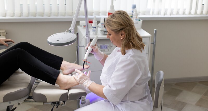Комплексная обработка видоизменённых ногтей и стоп (инфекция, грифоз, трещины, кератоз)
