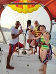 We took parasailing and snorkeling. Parasailing is very cool and safe. You take off from a sitting position directly from the boat, you also get on the boat. Everything is simple, convenient and comfortable. I can dip it into the water at will: if you want only with your feet, they will do it, if you want more, they will do more. All the guys are polite, helpful, help with everything. Snorkeling was taken to 2 islands (they are 2 hours) - also good. The second, farthest, reef is more interesting, more fish, more turtles. The only thing was that there was no soap solution on the boat so that the masks would not fog up. Prices can be negotiated. In general, the impressions are positive, I can safely recommend.