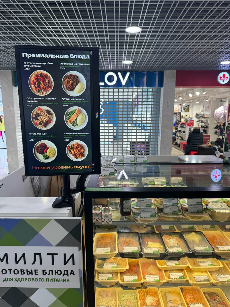 Мне нравится готовая еда милти, уже несколько лет там покупаю обеды почти каждый день по будням (раньше стойка стояла напротив входа, а не на втором этаже), с недавнего времени стал заказывать (сразу по 3 порции). Радует, что большие порции 350г-400г сытные, можно наесться одной порцией - оптимально на обед. Для сравнения пробовал заказывать на несколько дней в гроу фуд, май фуд, левел кичен, приЕм, но там не так вкусно и порции меньше (некоторые блюда доставлялись не очень свежими. Поэтому концепция милти с островками еды и ежедневным пополнением заказа лучше, чем доставка сразу на несколько дней. Во вкусвиле или перекрестке за такую же цену (300-350р) порция будет 250 гр, а такой не получается наесться полностью, нужно что-то еще брать из еды. Попробовав разные сервисы еды, вернулся к милти. Жаль убрали из меню ципленка с беби картофелем. Радует, что появляются новые блюда, в т.ч. премиум меню, а то привычное меню приедается и хочется разнообразия. Удобно что появилась доставка относительно недавно (до 40 минут в день заказа). Коллеги тоже там берут еду. Рекламирую бесплатно окружению ахах) но в моем рейтинге милти лучше других сервисов