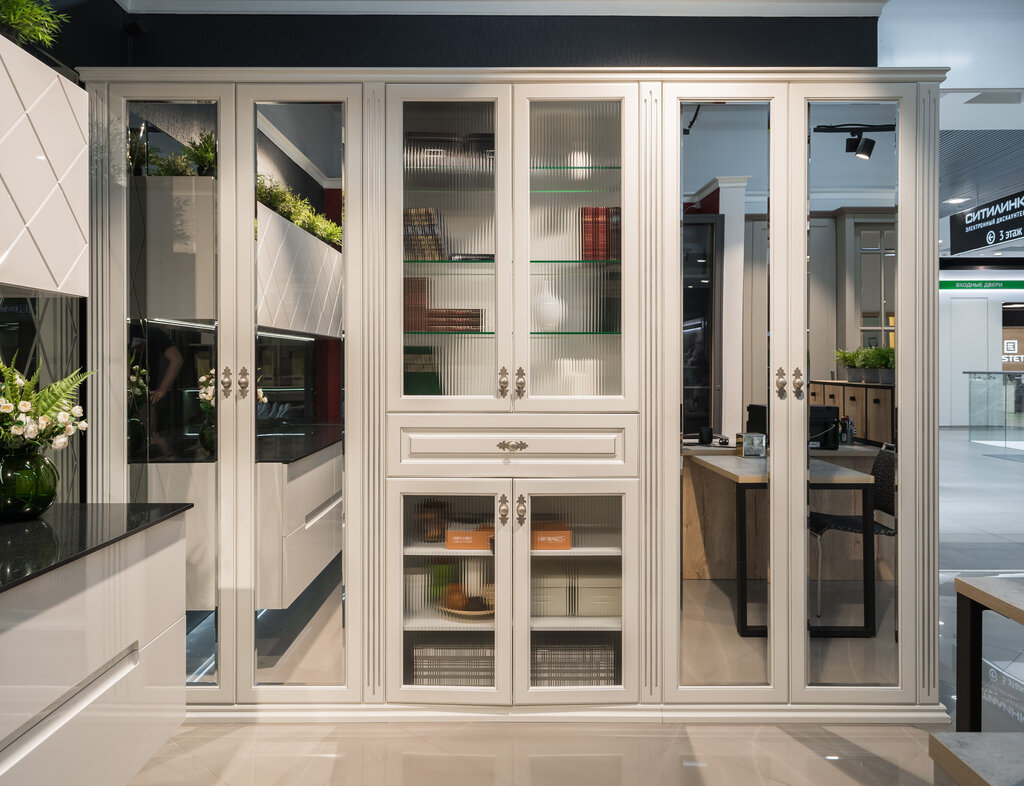 Белый шкаф декорированный зеркалом