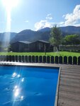 Отличное место!!! Жаль, что нельзя поставить 1000 балов. Всё красиво, чисто, уютно. У каждого домика есть мангалы, каждое утро они чистятся. Бассейн с подогревом 25,5-26 градусов, сначала вода кажется прохладной, потом просто кайф. Очень классно после дороги окунутся в бассейн, охладится, потом пожарить шашлык и сидеть на веранде отдыхать. Виды сумасшедшие, а воздух какой! Словами не передать. Если нужно постирать вещи, есть услуга - 1 стирка 300руб. В домике есть все самое необходимое. Спасибо большое за такой сервис, гостеприимность! Удачи в вашем бизнесе.